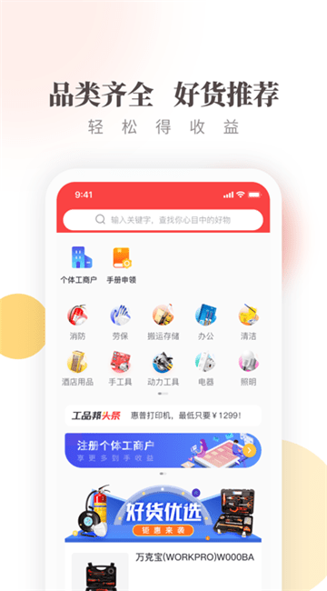 工品帮手机版是一款工业品专卖商城,为用户提供丰富工业品购资源,种类丰富多样,品质上乘有保障,专业客服一对一服务,专注为你精选各类优质好物,感兴趣的朋友就来下载体验吧!