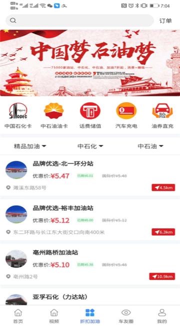 3、在折扣加油页面,即可在线查看附近的加油站,并导航驶入