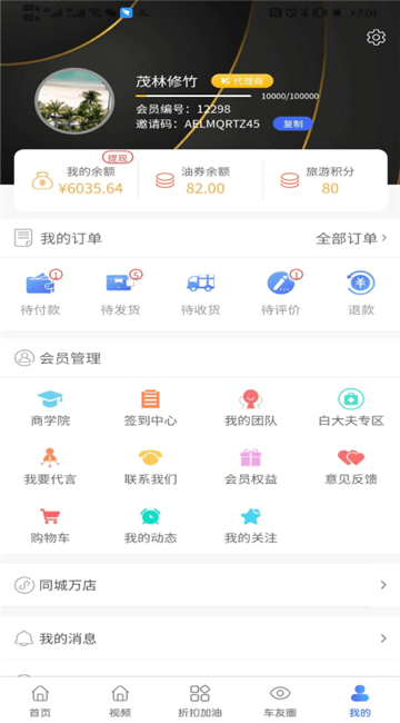 5、在我的页面,即可在线查看订单、余额等信息,还能在商学院进行学习