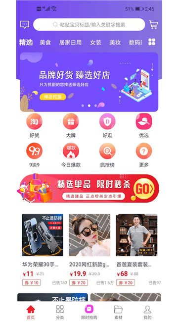 1、APP精选淘宝天猫上万款优质商品,品类齐全;