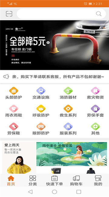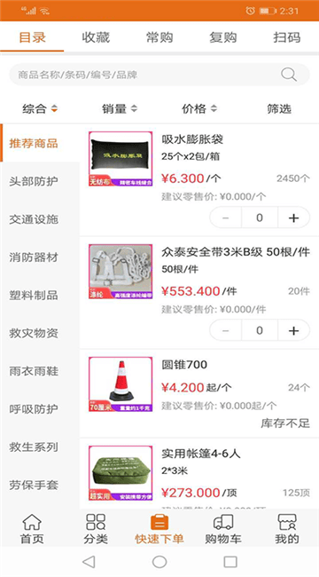 4、平台汇聚了最全的劳保用品,消防器材、救灾物资、头部防护、交通设施等都能在线选购,而且商品价格优惠,质量保优。
