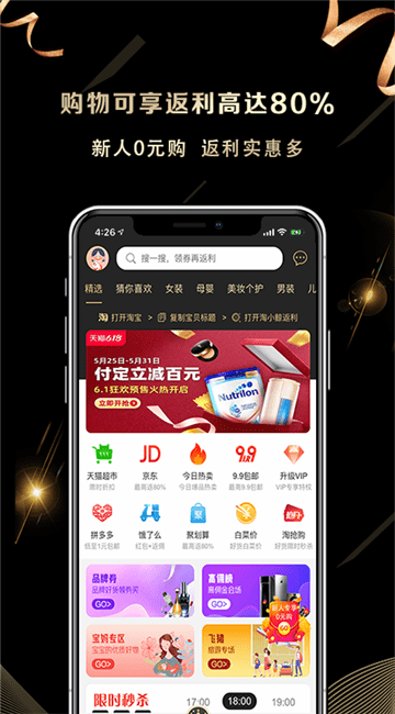4、高额返利:购物可享返利高达80%,券上返利省上加省;