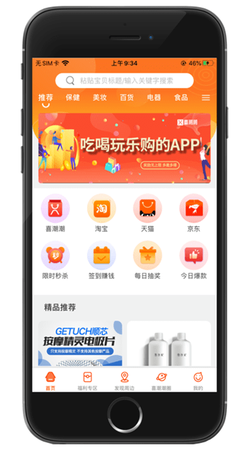 喜潮潮APP是一款自购省钱,分享赚钱的导购软件,用户通过喜潮潮平台进行购物,不仅可以使用商家优惠券,更可以将产品分享给家人和朋友,积累福利值获得返利,实现消费增值。
