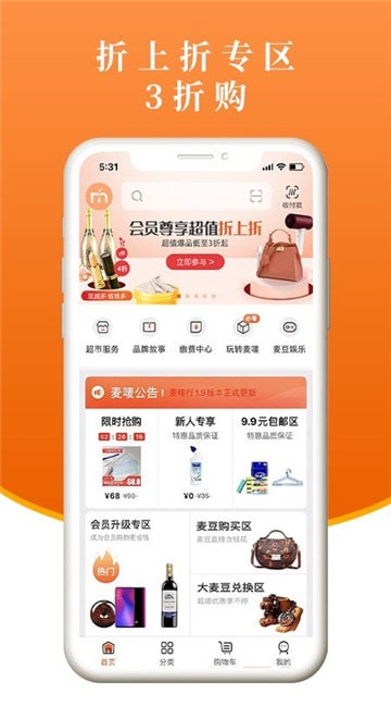麦唛行是一款多功能积分商城,力求打造一个五折购物生活平台。