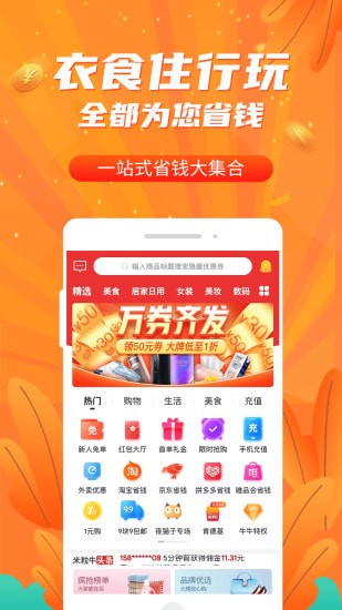 米粒牛安卓版是一款非常好用的省钱购物软件,软件功能非常齐全,平台每天会为用户发放优惠券,用户可以在这里领取优惠券进行下单购物,让购物更实惠。淘宝合作伙伴,安全可信赖。每日更新上千种商品,低至1折再包邮,收录商品均经过人工审核。服装鞋帽,居家文体,箱包配饰,数码母婴,应有尽有。