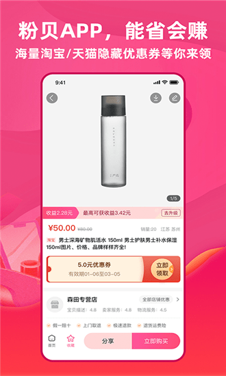 2、分享赚钱,把优惠券商品推广给好友,好友下单您也有返利,自用省钱,分享赚钱。