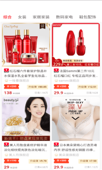 商品优惠券覆盖的产品非常的丰富,包含了服饰、家居、母婴、美食等等;