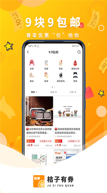 桔子有券安卓版是一款网络领券的购物省钱软件,专为用户提供各种购物优惠券,商品资源丰富任你选购,价格实惠质量放心,感兴趣的朋友就来下载体验吧!