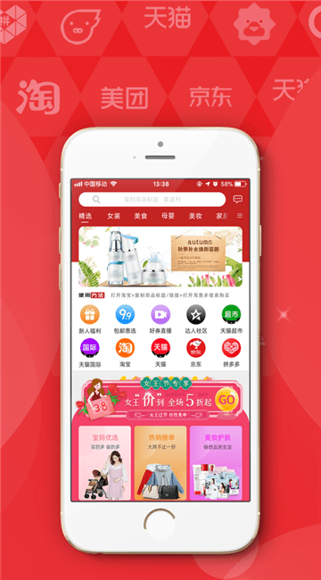 猴券安卓版平台每天精选千款优惠商品,为你打造营销素材,让你成交更省心;