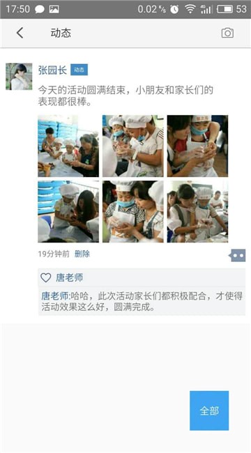 4、还可以在动态的下方进行与家长之间的交流沟通