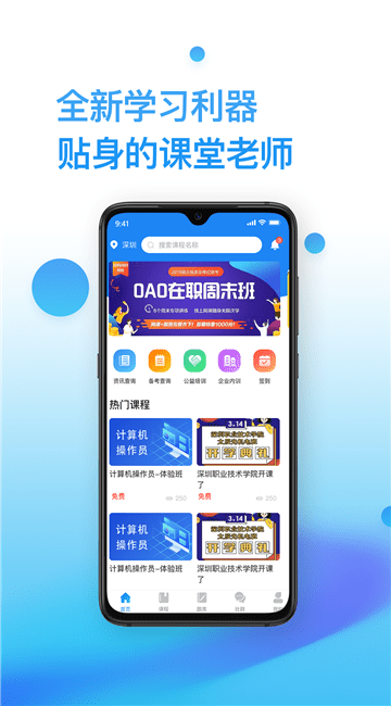 资料下载,将学习资料就那些下载缓存,便于随时进行学习;