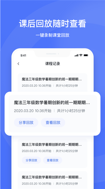 一键查看历史课程,学生可以自由选择观看;