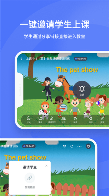 支持手机、iPad、电脑、网页等多端上课方式,可自由选择;