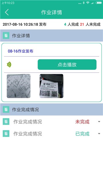 4、管理班级更轻松,实时阅览到统计的学生作业统计内容;
