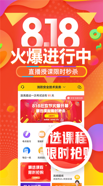 中级消防证考试试题最新版是一款学习辅导软件,用户可以在线查看相关资料进行学习,还可以选课,大量限时秒杀课程,精讲课程供用户选择,海量名师在线辅导,不懂的问题专业老师为你答疑解惑,让你掌握重难点知识点考点,帮助你顺利通过考试,学习起来没有那么大的压力,有需要的用户快来下载使用吧!