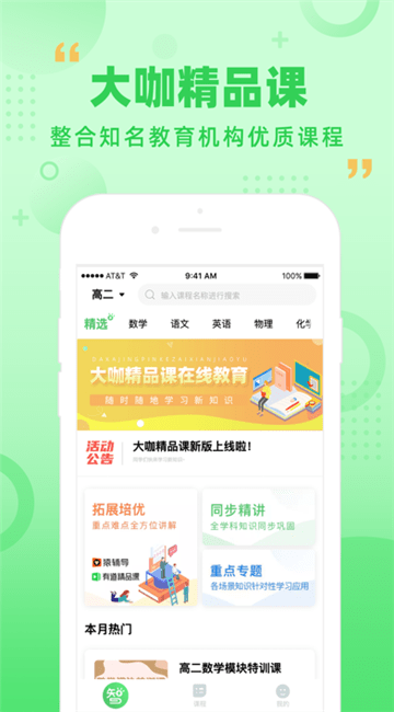 大咖精品课预约版是一款功能强大的线上教育学习平台,涵盖小、初、高各年级的丰富学习资源,线上教育资源与课本教材同步,适用于不同年级同学学习,满足你不同学习需求,感兴趣的朋友就来单机8下载体验吧!