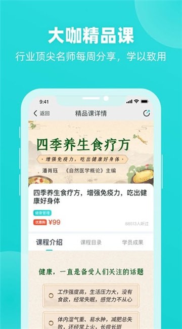 简知直播助手最新版是一款课程直播学习软件,为用户提供大咖精品养生食疗课程,学习的同时还能与其他同学进行交流,行业顶尖名师每周分享,让你学以致用,快来小黑游戏下载!