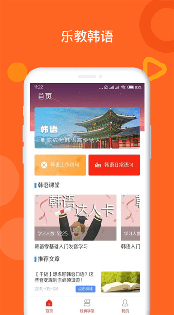 2、进入韩语课堂,可以学习韩语零基础入门发音