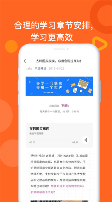3、用手机就可以学习韩语,绝对不比你去报班学习差,还会帮大家指定适合的学习计划。