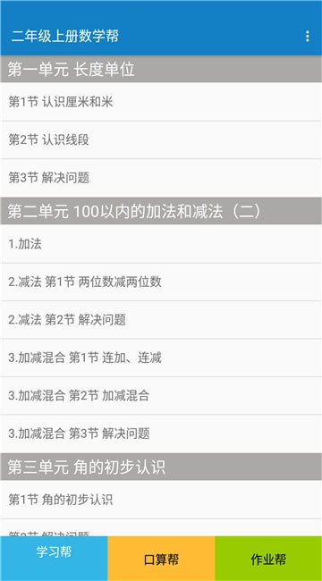 3、二年级上册数学帮app功能主要包括加减乘除,线段识别,厘米识别。