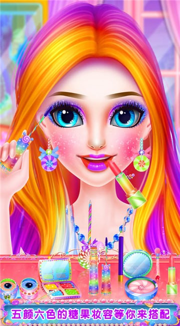 4、五颜六色的糖果妆容等你来搭配,一键点击就能进行个性化搭配;