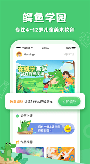 鳄鱼学园是一个专注4-12岁的在线少儿美术教育的平台,鳄鱼学园安卓版还特邀专业儿童心理专家、知名职业画师、专业少儿美术教研团队,根据不同阶段的孩子能力来推荐课程,致力于打造更适合少儿在线创意美术学习的系统课程,能够时刻陪伴孩子的成长,有效提升孩子的学习竟争力;孩子可以在平台上学习关于美术的全部知识,非常全面,可以根据自身的美术水平来自主选择,更有针对性的学习,能够帮助每位同学进行专项辅导,可以在平台上学习非常多的专业绘画技巧,即可让你快速提高自己的画画水平,感兴趣的朋友欢迎来下载学习吧。