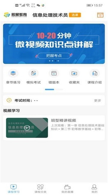 辰展课堂安卓版是一款手机在线学习软件,在这里为用户提供大量职业教育的学习课程,在这里用户可以根据自己的专业选择课程,支持用户进行章节练习、模拟考试,还有错题本功能,帮助用户查漏补缺,快来单机8下载使用吧!