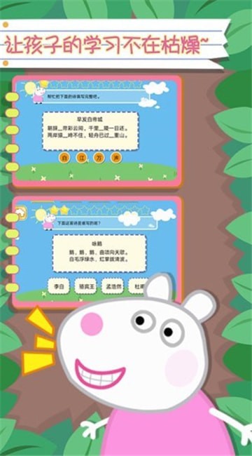 3、动画教学模式,孩子在线学习科目的时候全部教学内容都是以动画画面为背景进行的;