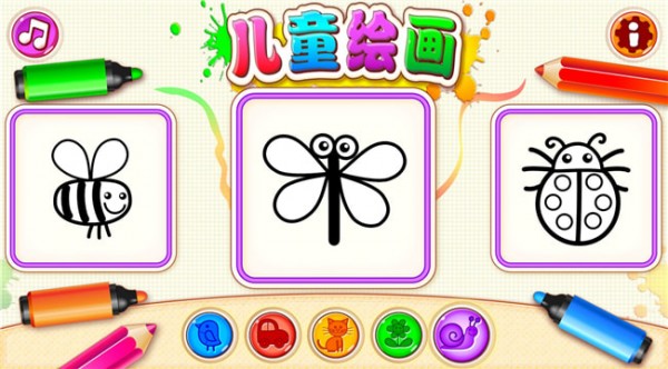 儿童绘画是一个独特的动画应用,用游戏愉快的样子帮助孩子轻松的学习画许多简单可爱的东西,在应用中,儿童可以一步一步地画出蝴蝶、青蛙、小车、刺猬。画完后每个人物都会动起来!蝴蝶要飞起来、笑起来;刺猬卷成一团,青蛙可爱的跳来跳去。