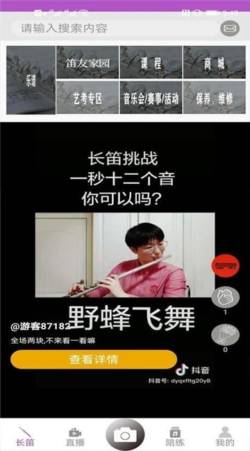 2、点击长笛模块,可以在这里看到诸多的长笛挑战视频