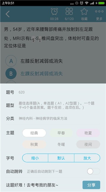 2、遇到的试题都可以分享到其他平台给自己的好友,考一考对方;