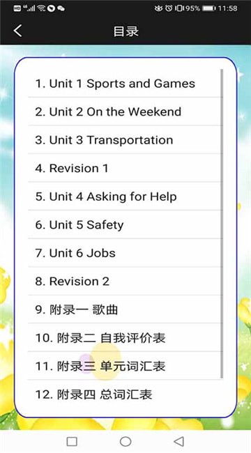 1、有时间的时候打开app,立马可以在线学习小学四年级上册的英语课文