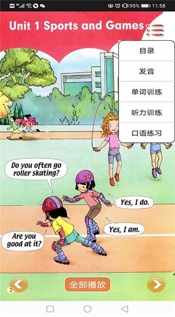 让学生不仅能看到全彩的课本画面,还能点到哪里读到哪里、哪里不会点哪里,并带有中文翻译。支持系统自动朗读和手工点