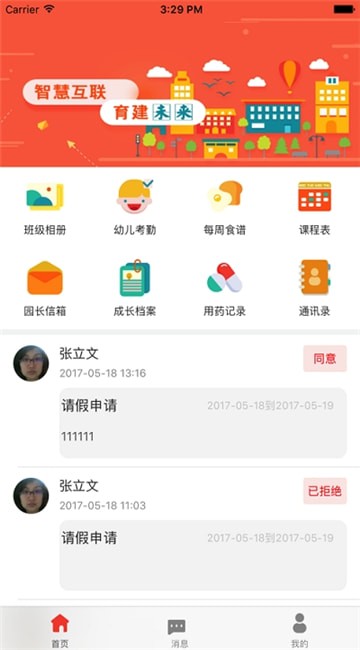 2、请假:实时发送请假消息,让老师及时掌握幼儿情况。