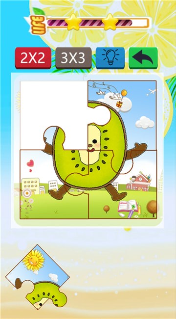 2、首先会进入第一关,认识常见水果并进行拼图