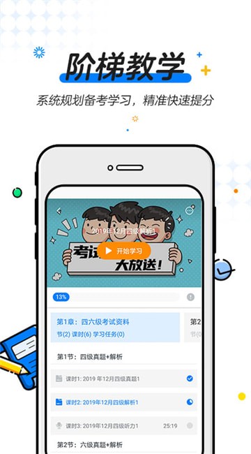 2、阶段性推送学习课程,精准快速的提分,让有考试需求的学生都能快速提升考试成绩;
