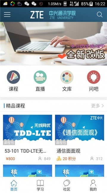 中兴e学院app能够查看教学视频,对各类知识进行系统化学习