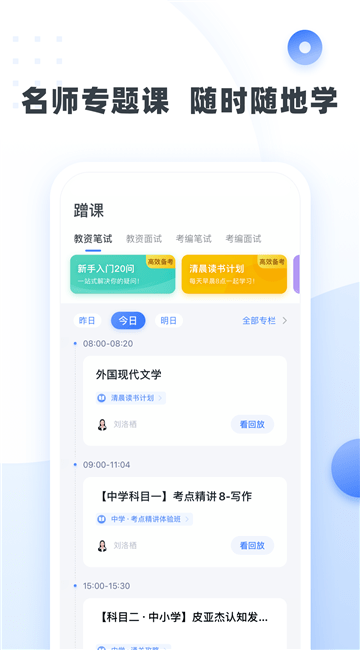 3.我的直播课:名师指导,直播听课耗流量少,高品质音质给您最佳听课体验;错过直播也不怕,回放列表无限次播放。