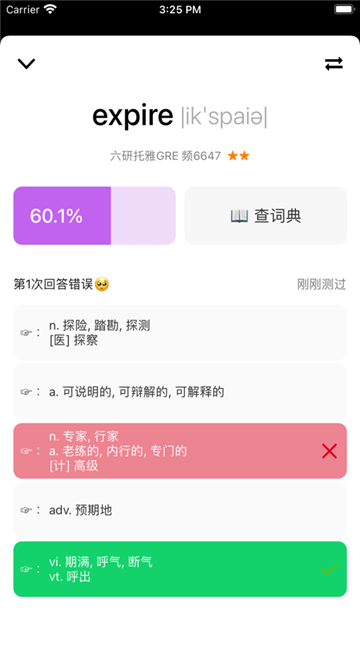 而“单词块”里的每一个单词都有独立的记忆曲线。通过大量用户的学习情况作为样本,训练出“单词—遗忘曲线”的映射,进而推导出“词根—遗忘曲线”,然后在漫长的英语学习中不断的利用这个映射和修正这个映射。力求用更加科学客观的方法来反馈用户的学习水平和勤奋程度。目前这个体系还未全部开放出来,后续的版本将会不断完善。