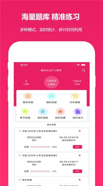海量题库,精准练习,多种模式,实时统计,碎片时间利用