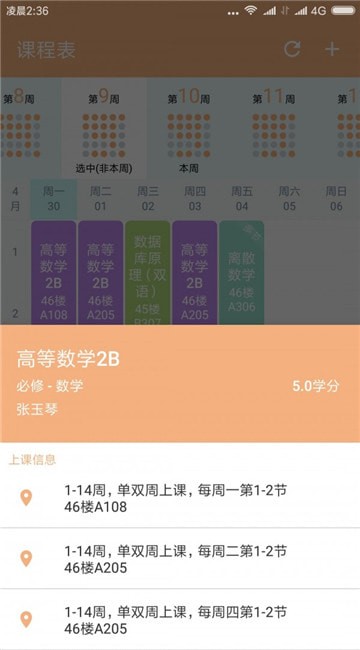 2、一键查询自己的各科学习成绩以及综合学分。