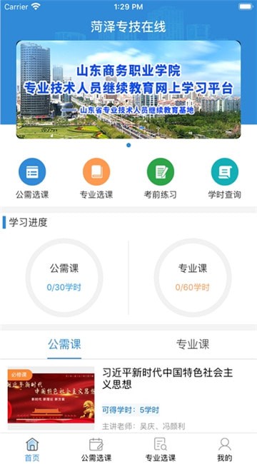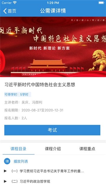 公需课程的查看、搜索、报名、学习功能。