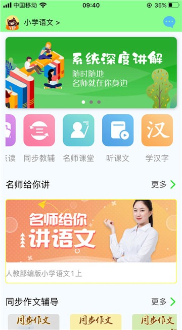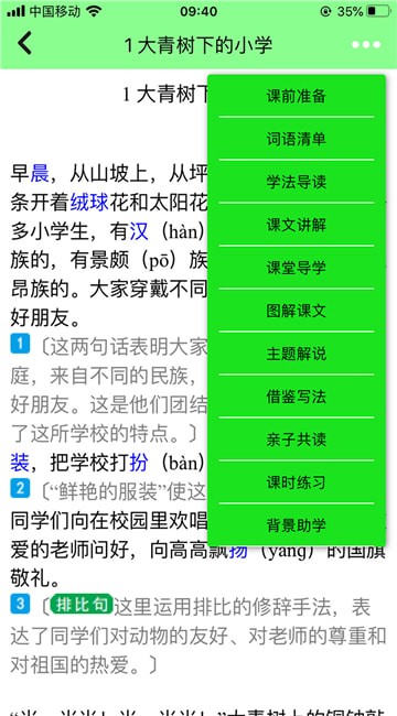 语文点读:支持在线进行文章的点读功能,有效地训练孩子的朗诵能力;
