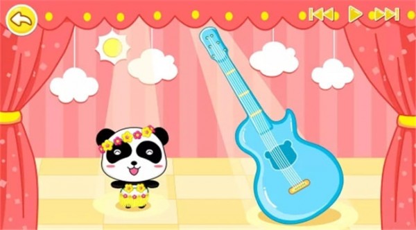 ●吉他:炫丽的舞台上,小熊猫随着音乐翩翩起舞,点击舞台上方的装饰物,让你惊喜连连!