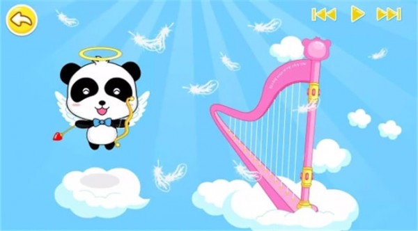 ●竖琴:熊猫天使是位伟大的演奏家,站在云端,为宝宝们演奏一曲曲动人心魄的歌曲。