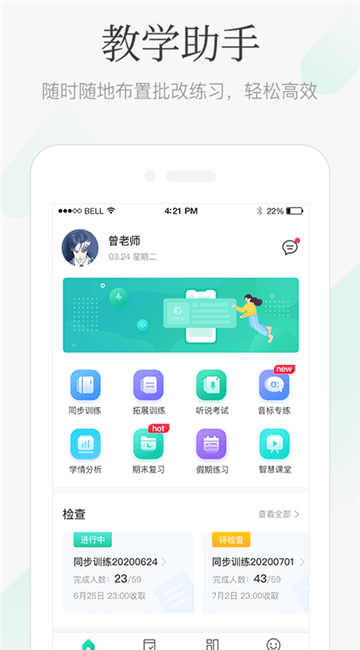 2.系统批改,一键奖评,让你通过手机轻松提高教学效率;