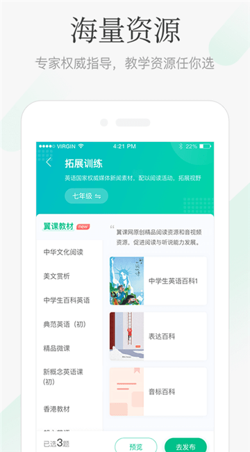 翼课教师手机版是一款教育辅导软件,翼课教师手机版专为教师打造,帮助教师快速备课,海量教学资源,辅导老师轻松制作自己的备课教程,同时还能随时随地批改作业,提升教师效率,让教学更轻松。翼课教师手机版是一款教育学习类软件,致力于为老师提供便捷的教学服务,老师通过手机版就可以为学生布置作业,非常的方便,不用自己在口头布置作业,提高自己教学的效率和质量,帮助老师轻松完成各项教学工作,大大减轻老师的教学压力,不仅如此,这里还提供了海量优质学习资源,老师可以直接来使用来给学生布置作业,不需要自己查找资源,节省老师的时间,所有的资源支持在线预览,能够保证学习资源符合自己的需求,是一款教学辅导软件,有需要的用户可以下载体验。
