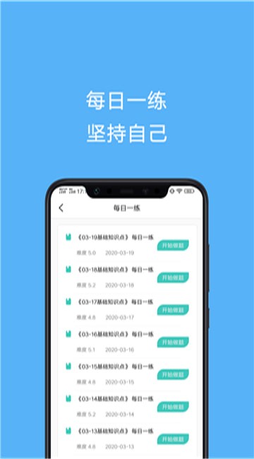 查阅每日一练,浏览每天的练习知识点和题目的难度;