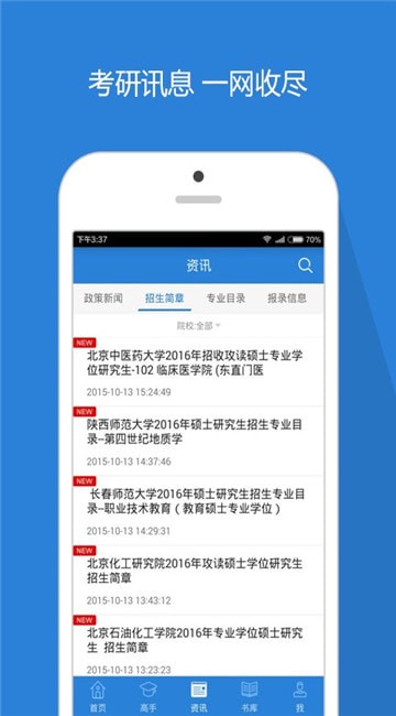 ★研招政策、招生简章、专业目录、考研知识、学习资料、备考经验、报录信息、复试调剂,所有考研信息资料一网打尽,完全整合;