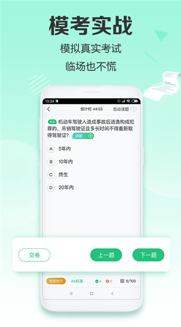 3、随时随地都可以模拟考试,并且还能轻松了解考试规则,知晓考试流程;